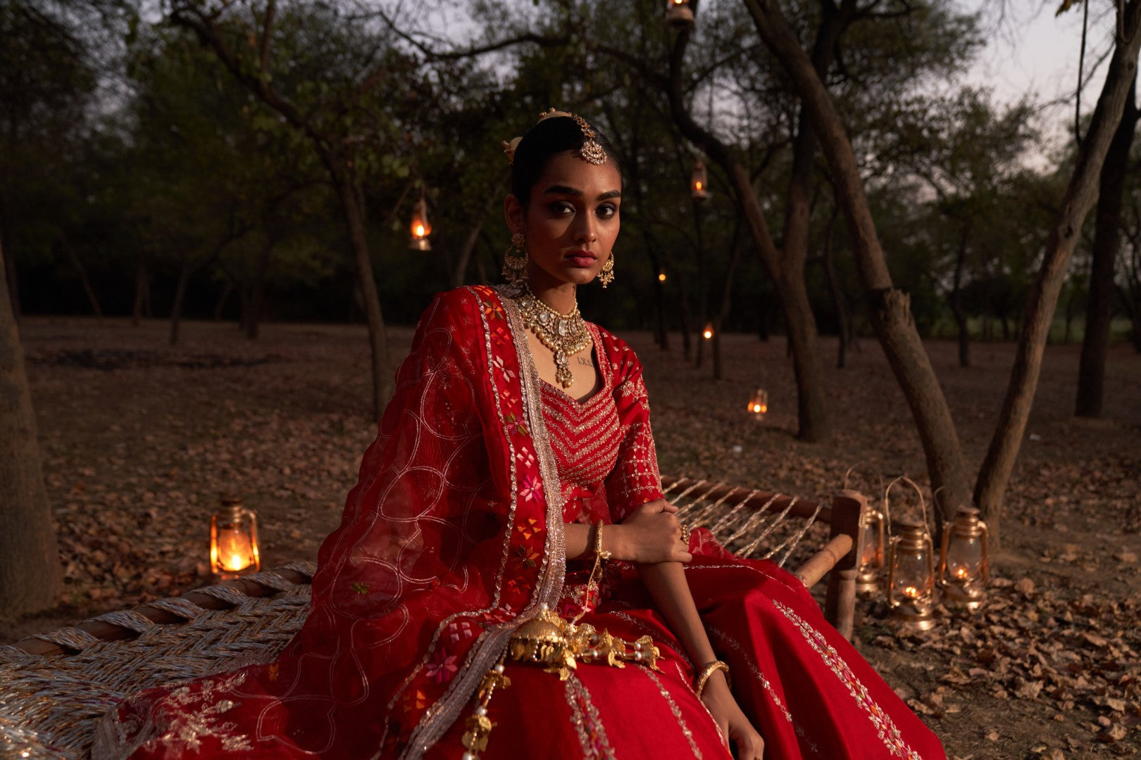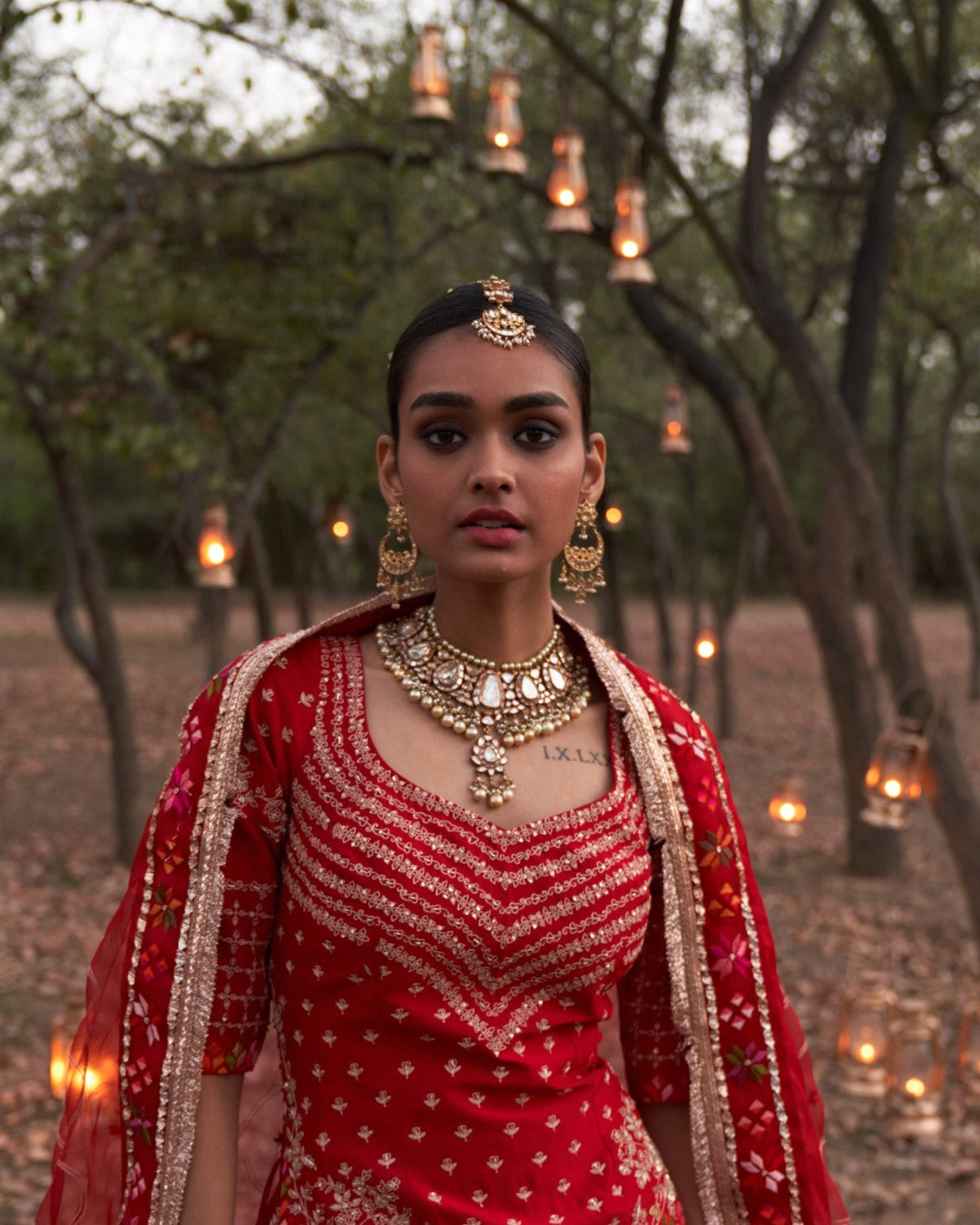 This outfit is crafted from pure fabric. To maintain its quality, colour, and finish, dry clean only is recommended
