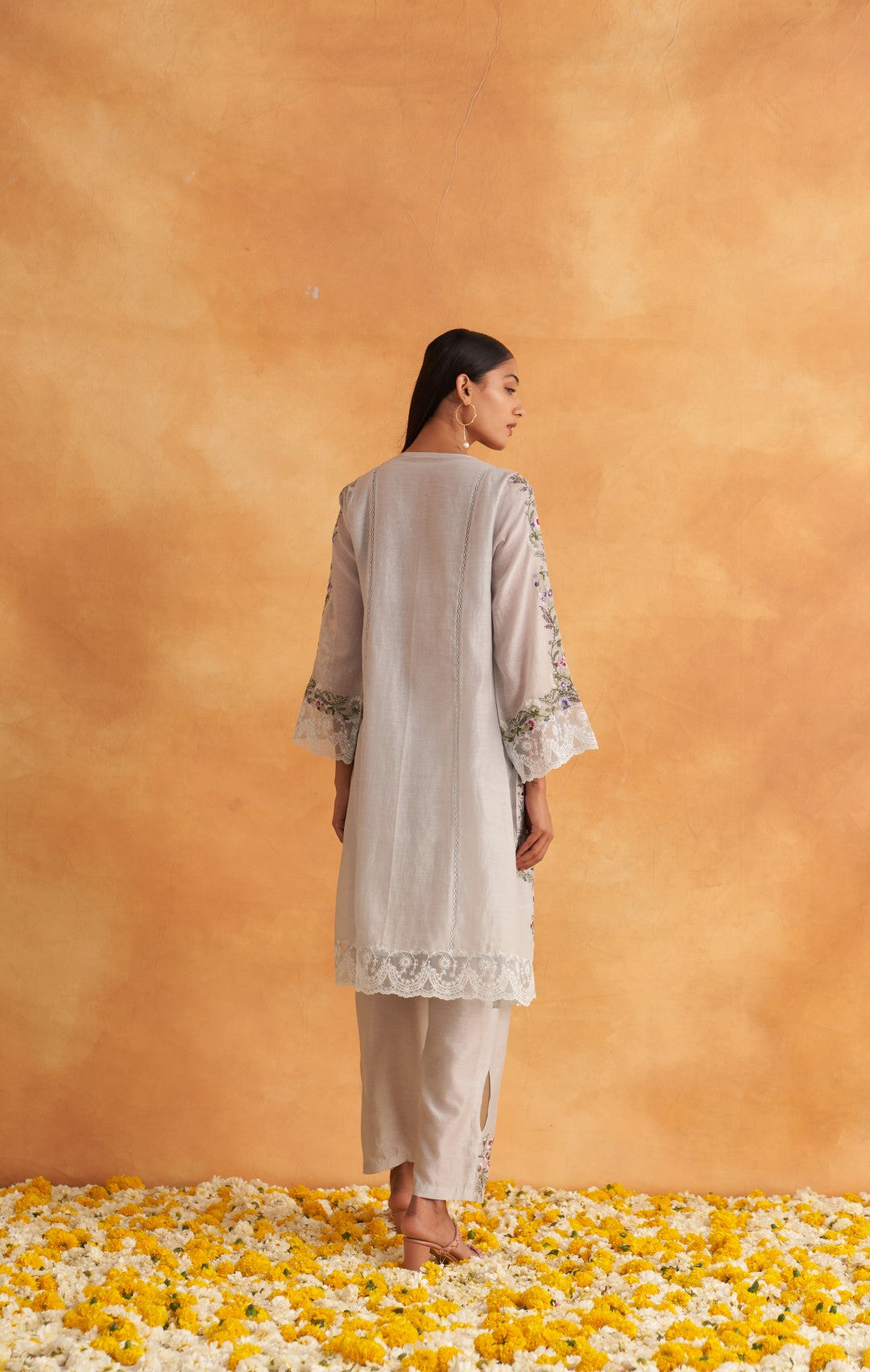 This outfit is crafted from pure fabric. To maintain its quality, colour, and finish, dry clean only is recommended