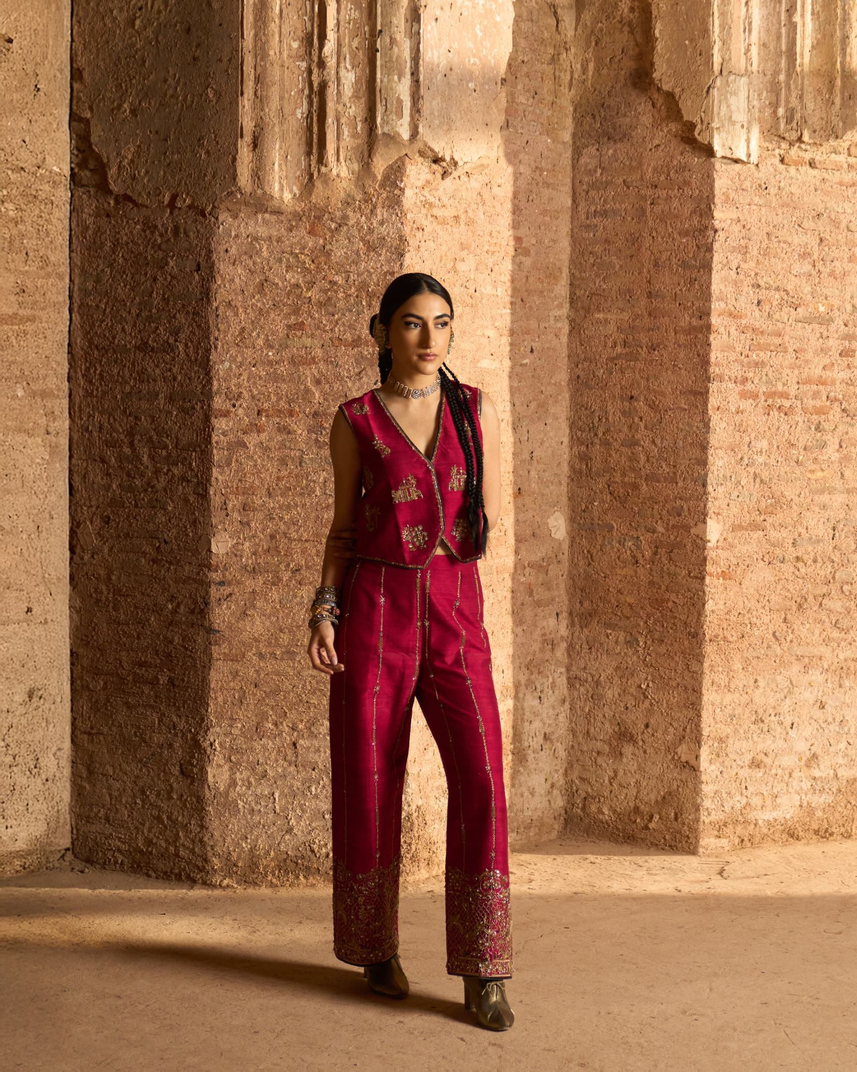 Contains 2 pieces - Pure raw silk waist coat (printed cotton lining) and raw silk pants