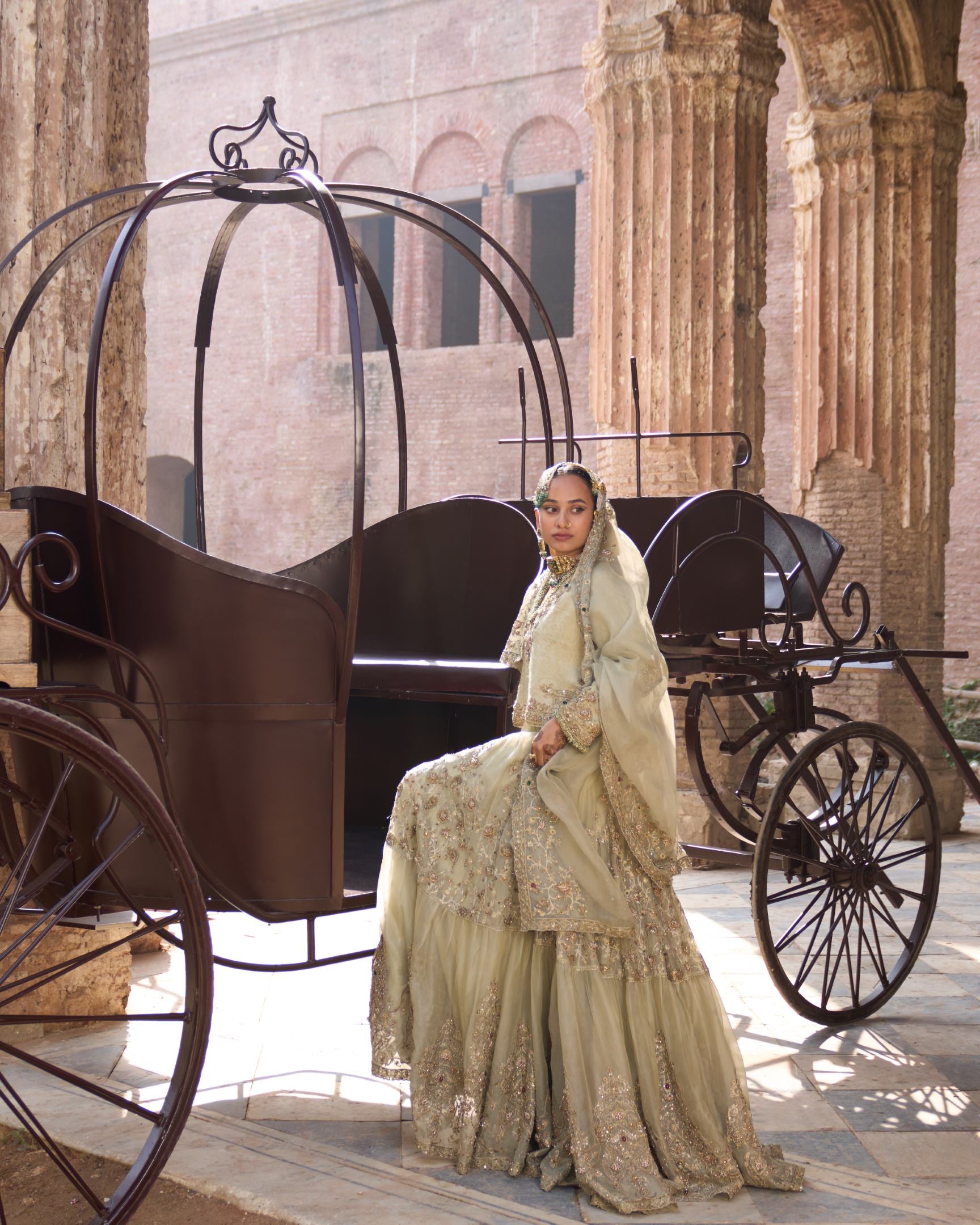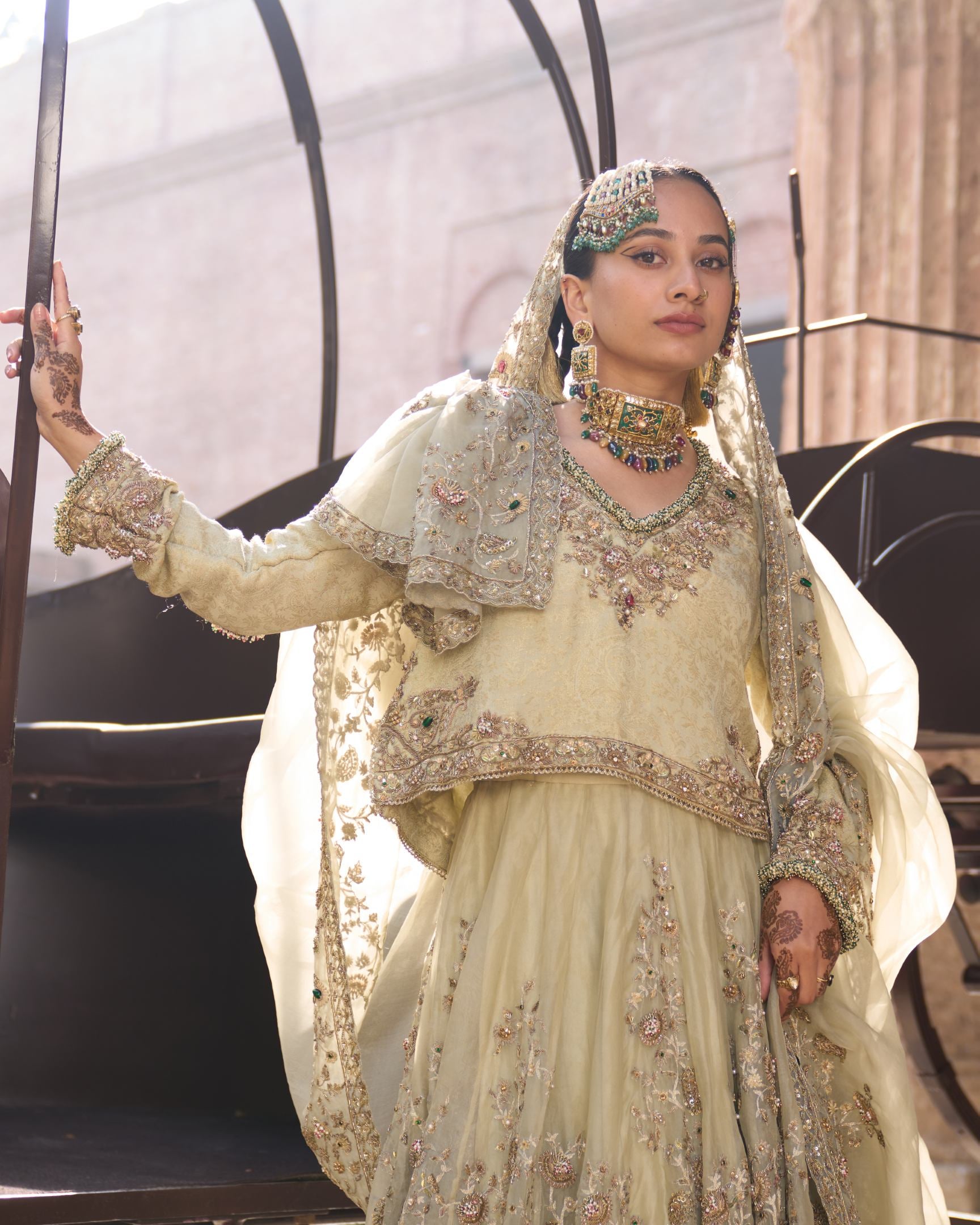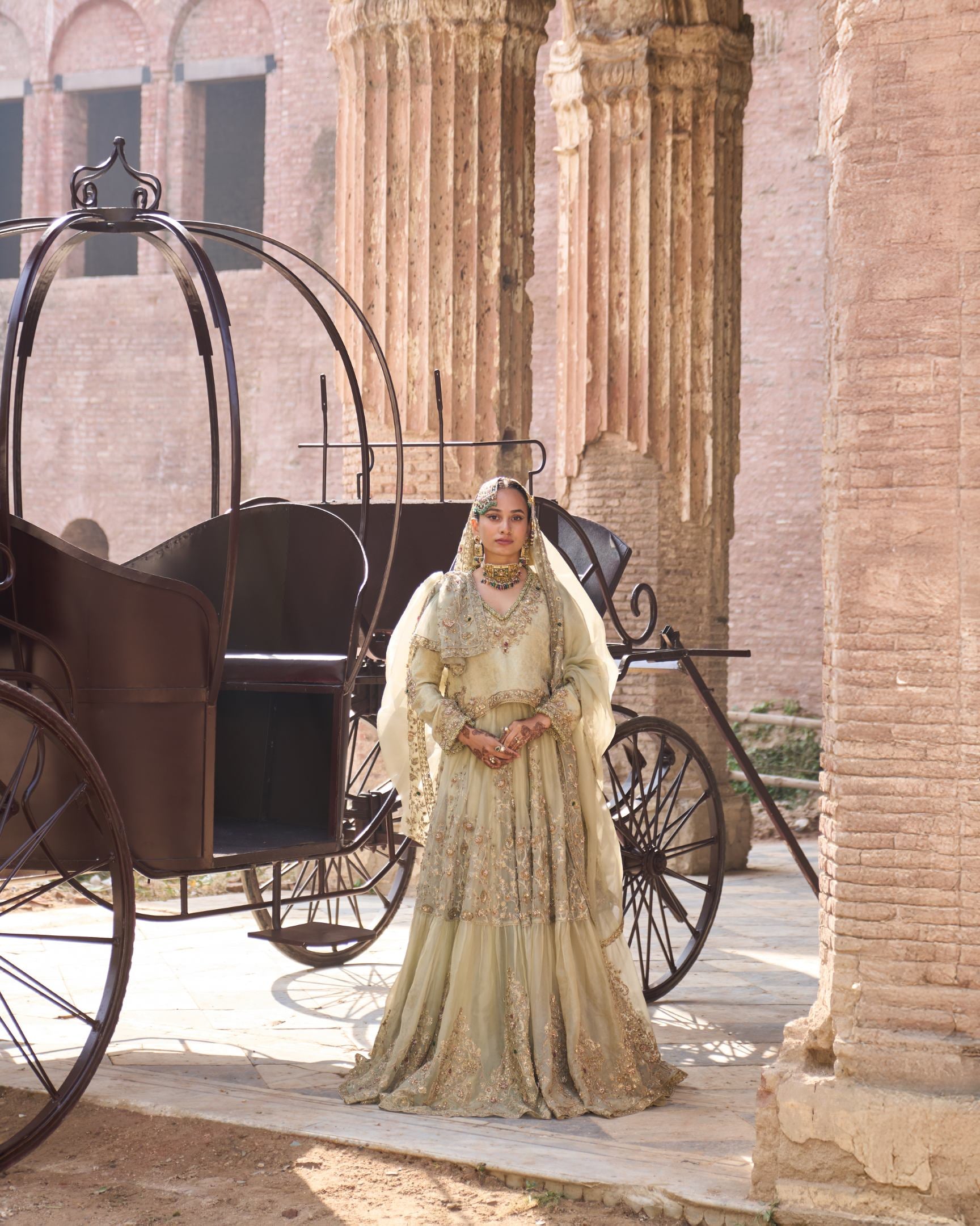 The soft, refreshing hue of pista green evokes nature, renewal, and understated opulence, making it perfect for festive gatherings, weddings, or cultural celebrations. Designed to move beautifully with every step, this lehenga is a celebration of heritage artistry and contemporary elegance, radiating refined charm and palace-worthy allure.