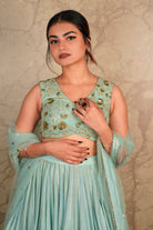 This outfit is crafted from pure fabric. To maintain its quality, colour, and finish, dry clean only is recommended