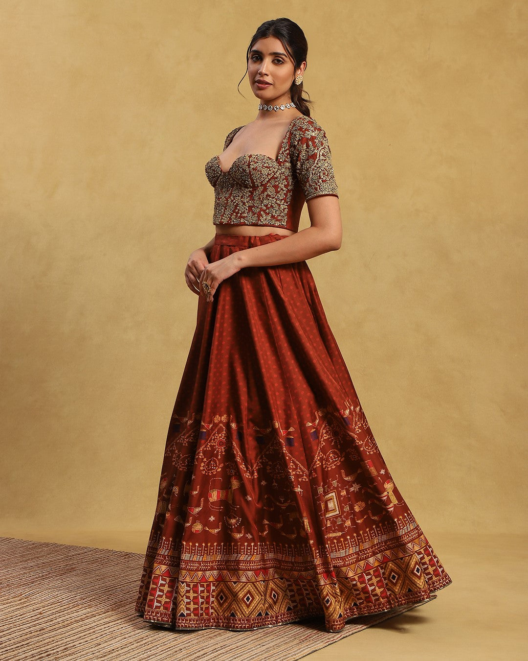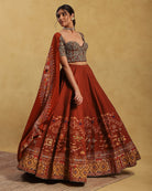 Contains 3 pieces - Pure gabardin silk blouse (tafta lining), gabardin silk lehnga (tafta lining) & Printed crepe dupatta