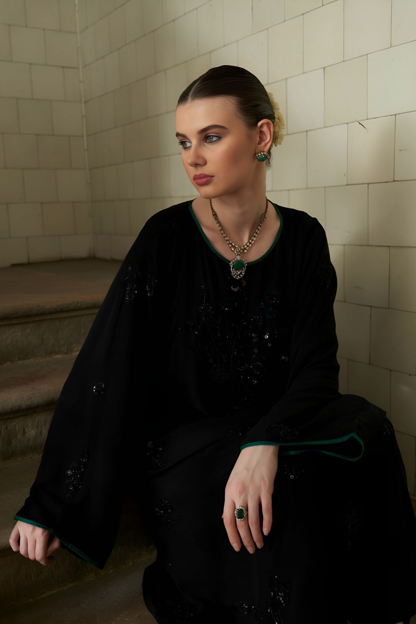 This outfit is crafted from pure fabric. To maintain its quality, colour, and finish, dry clean only is recommended