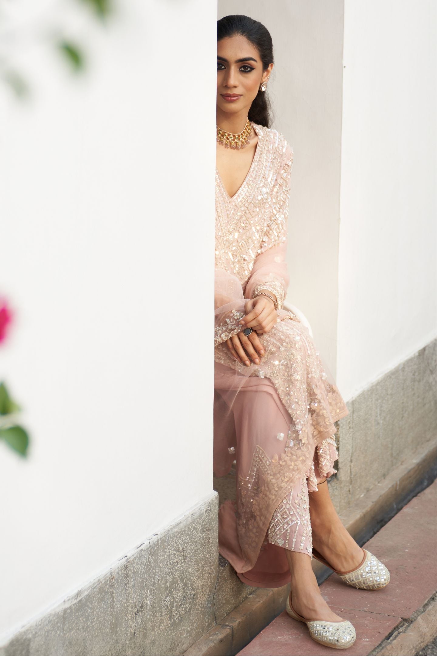 This outfit is crafted from pure fabric. To maintain its quality, colour, and finish, dry clean only is recommended