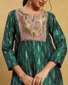 This outfit is crafted from pure fabric. To maintain its quality, colour, and finish, dry clean only is recommended