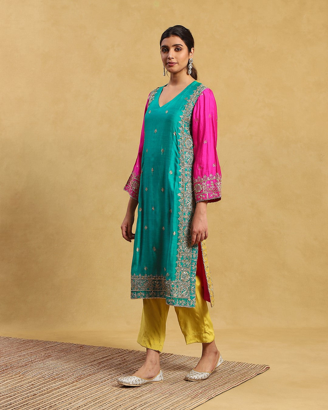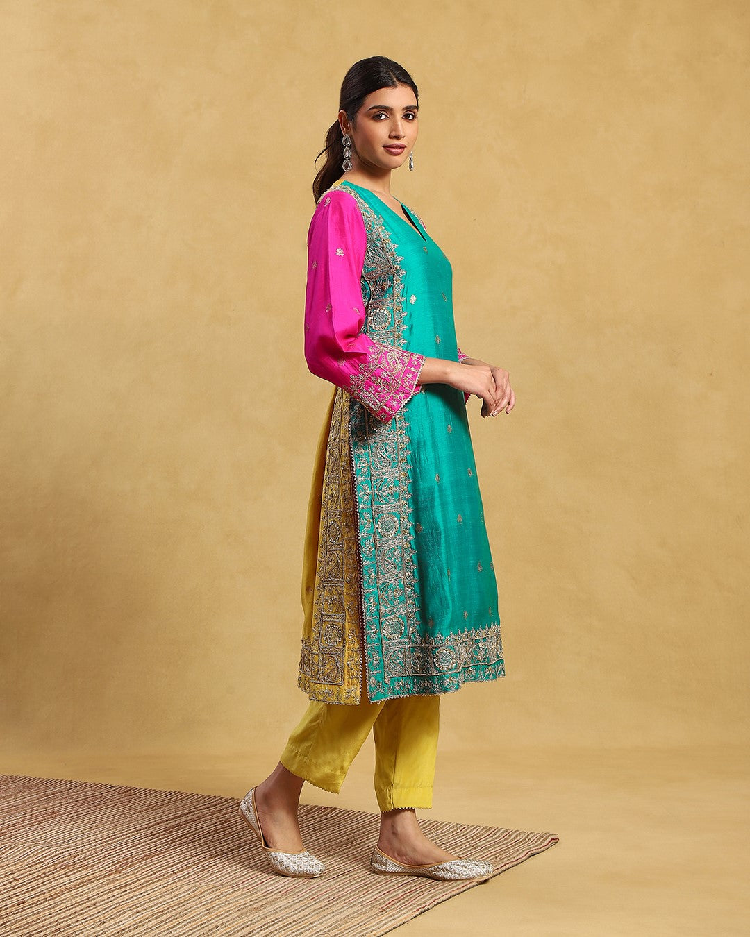 This outfit is crafted from pure fabric. To maintain its quality, colour, and finish, dry clean only is recommended