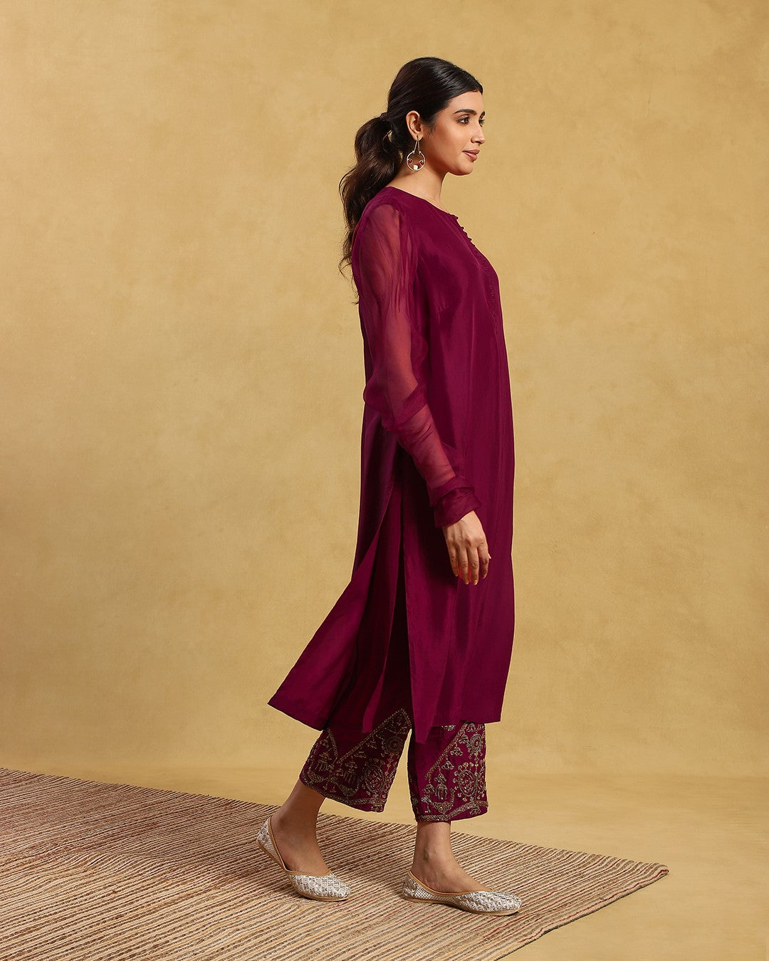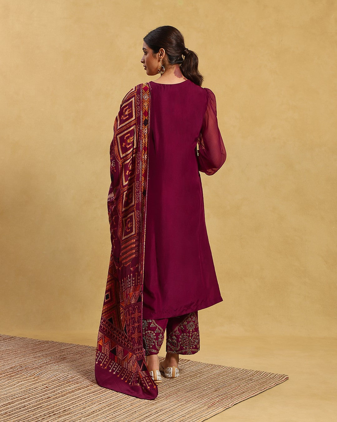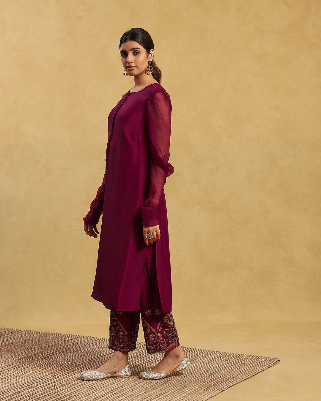 This outfit is crafted from pure fabric. To maintain its quality, colour, and finish, dry clean only is recommended