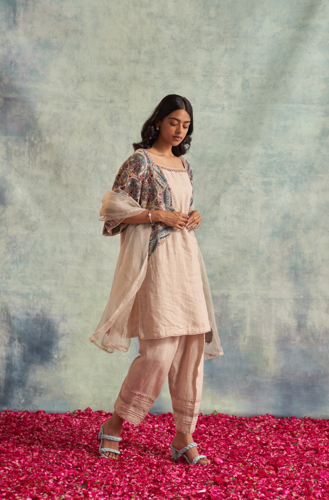 Contains 3 pieces - Linen shirt (cotton lining), linen salwar & organza dupatta