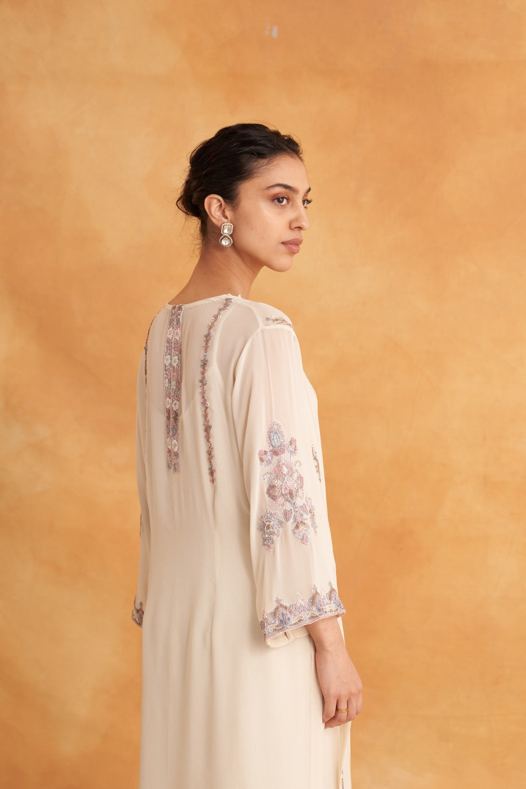 This outfit is crafted from pure fabric. To maintain its quality, colour, and finish, dry clean only is recommended