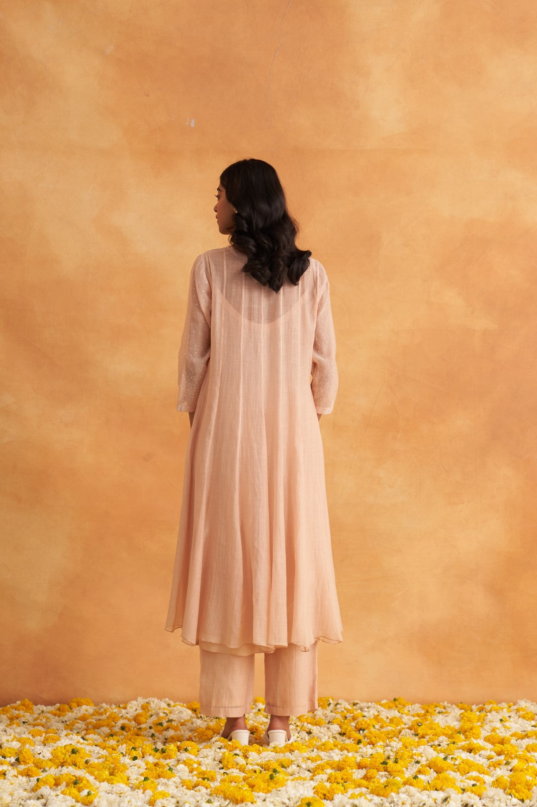 Contains 4 pieces - Chanderi shirt, crepe undershirt, chanderi pants & chanderi dupatta