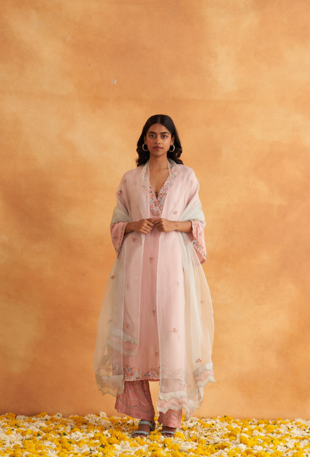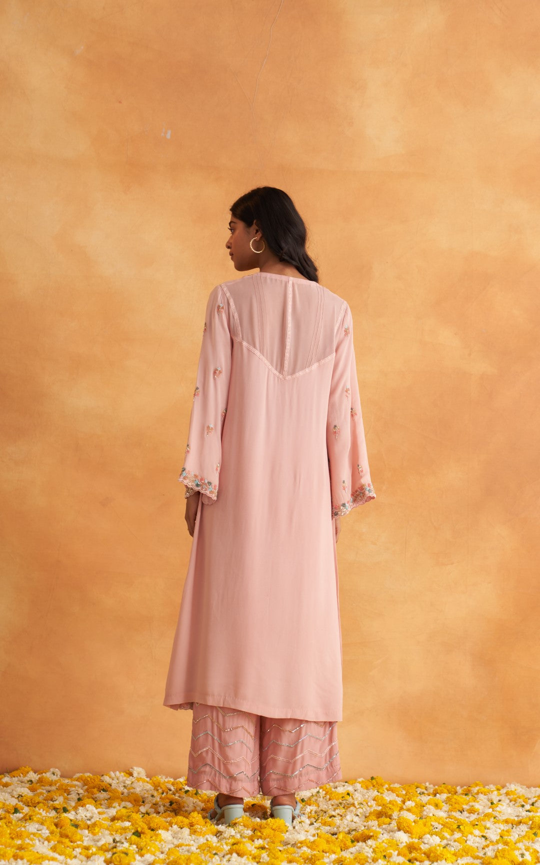 This outfit is crafted from pure fabric. To maintain its quality, colour, and finish, dry clean only is recommended