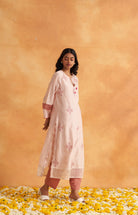 Full semi formal suit set comprises of an embroidered long shirt with an additional undershirt paired with an unadorned cotton salwar and a beautifully printed cotton dupatta.