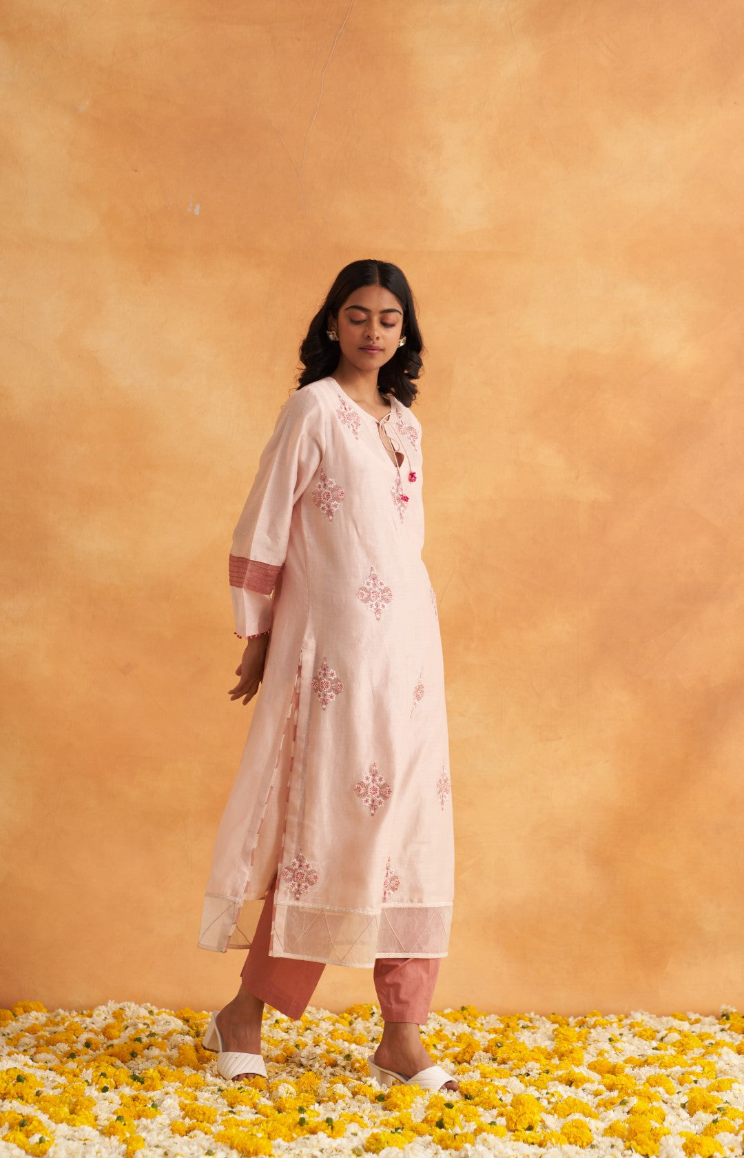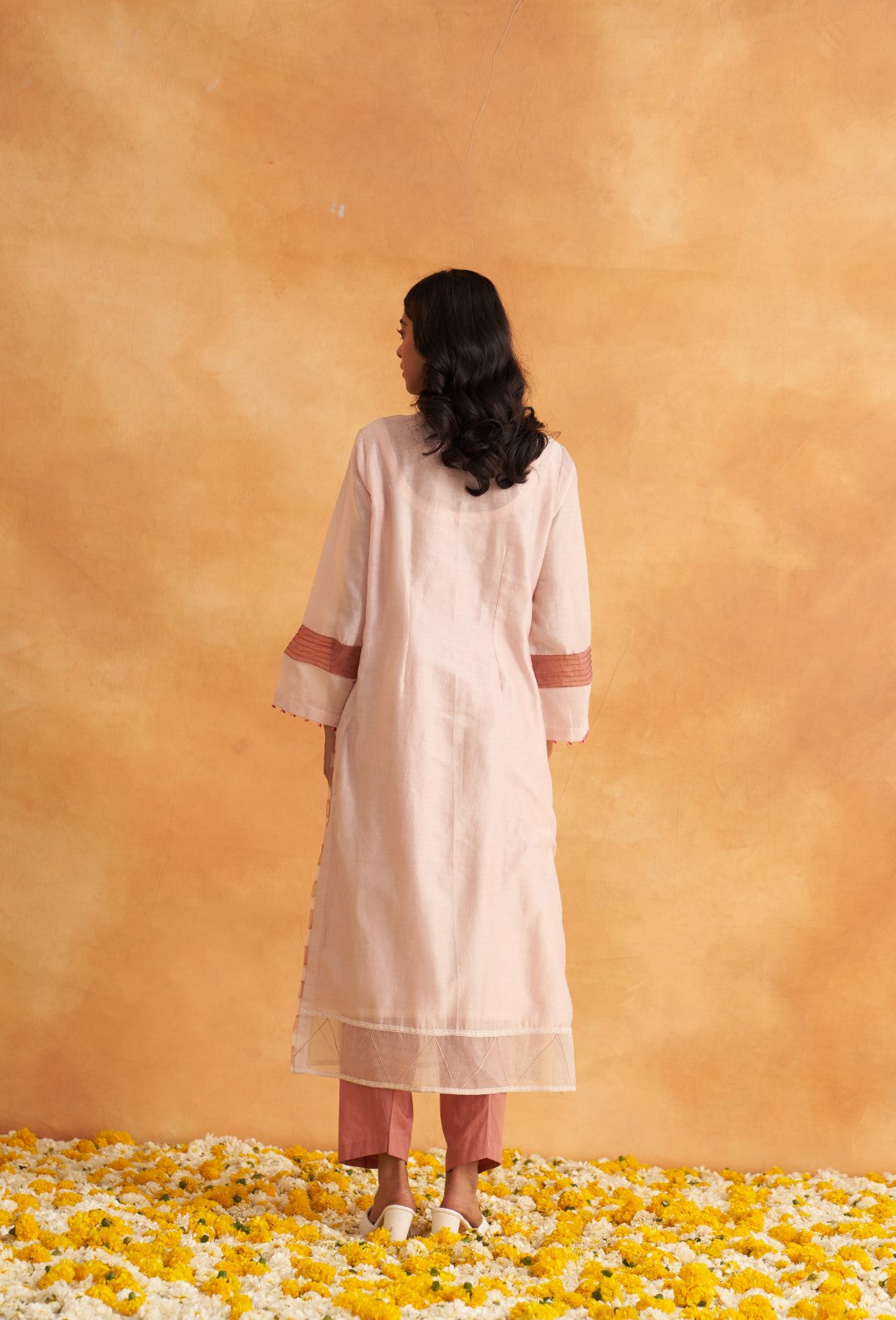 This outfit is crafted from pure fabric. To maintain its quality, colour, and finish, dry clean only is recommended