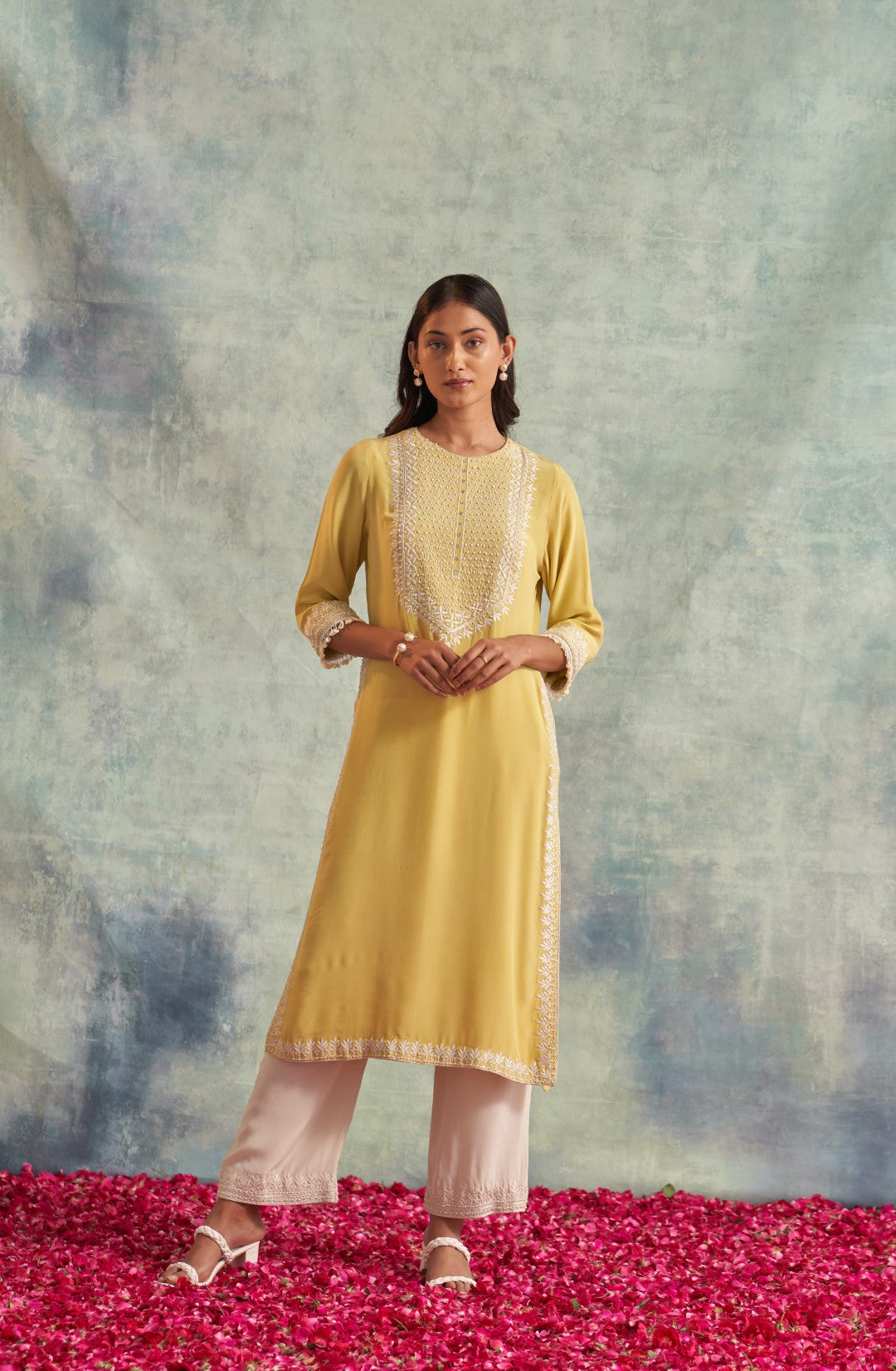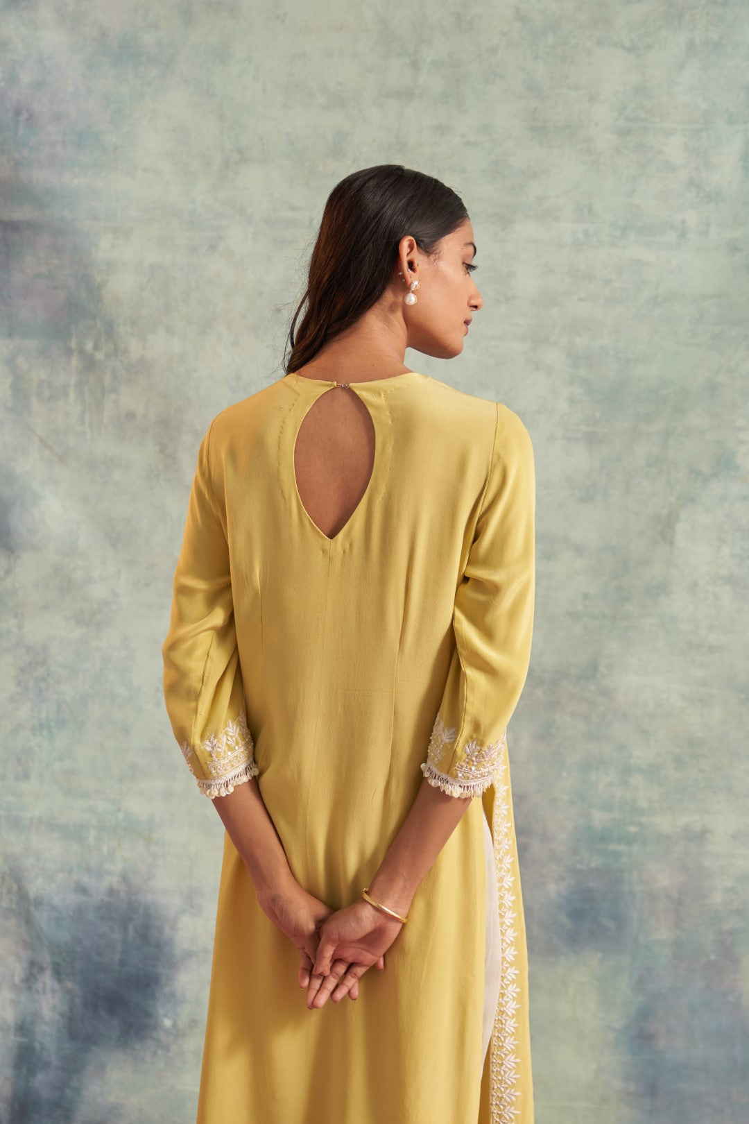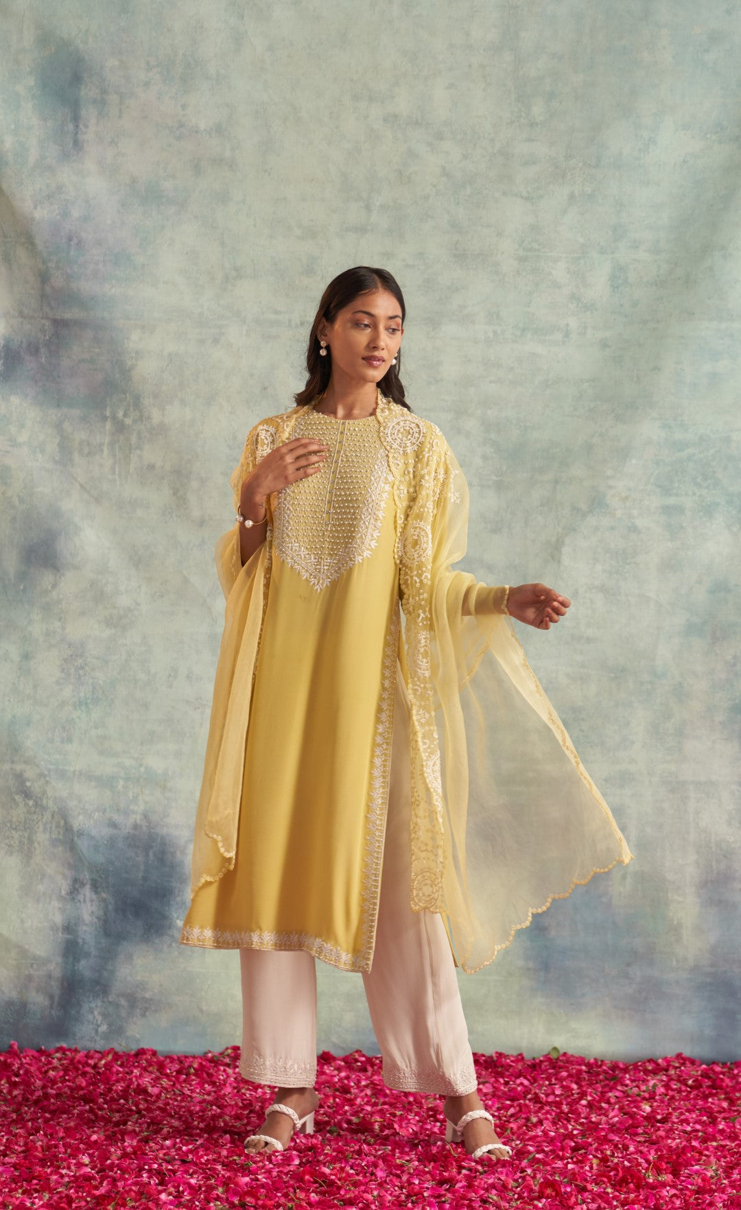 This outfit is crafted from pure fabric. To maintain its quality, colour, and finish, dry clean only is recommended