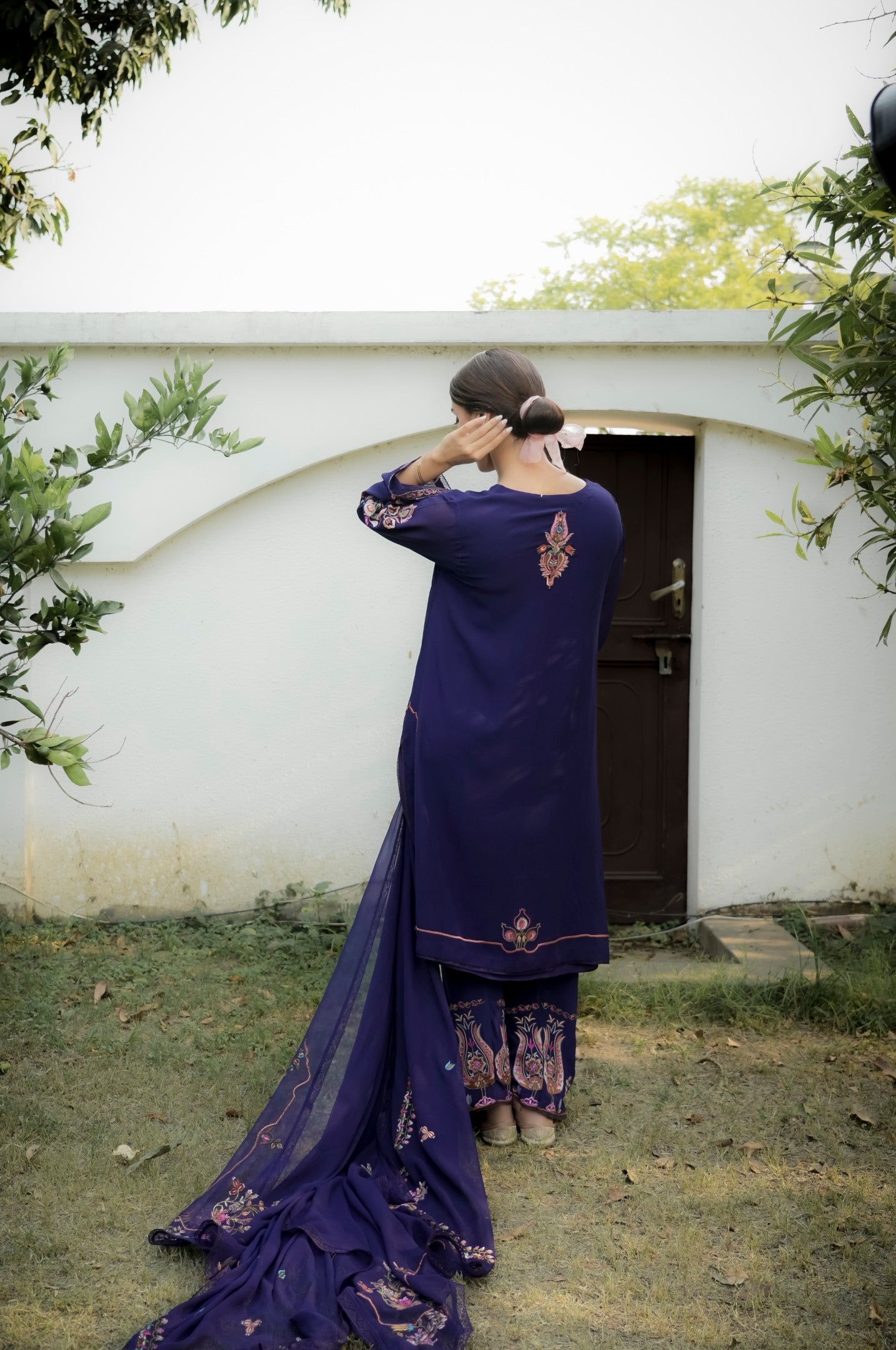 This outfit is crafted from pure fabric. To maintain its quality, colour, and finish, dry clean only is recommended