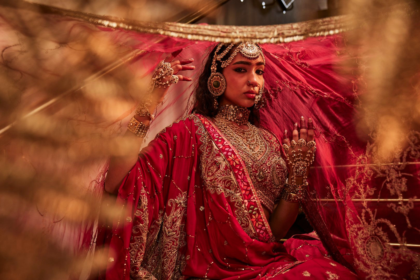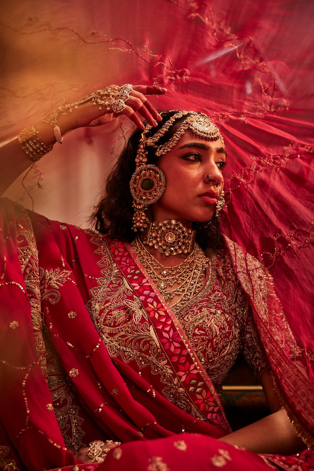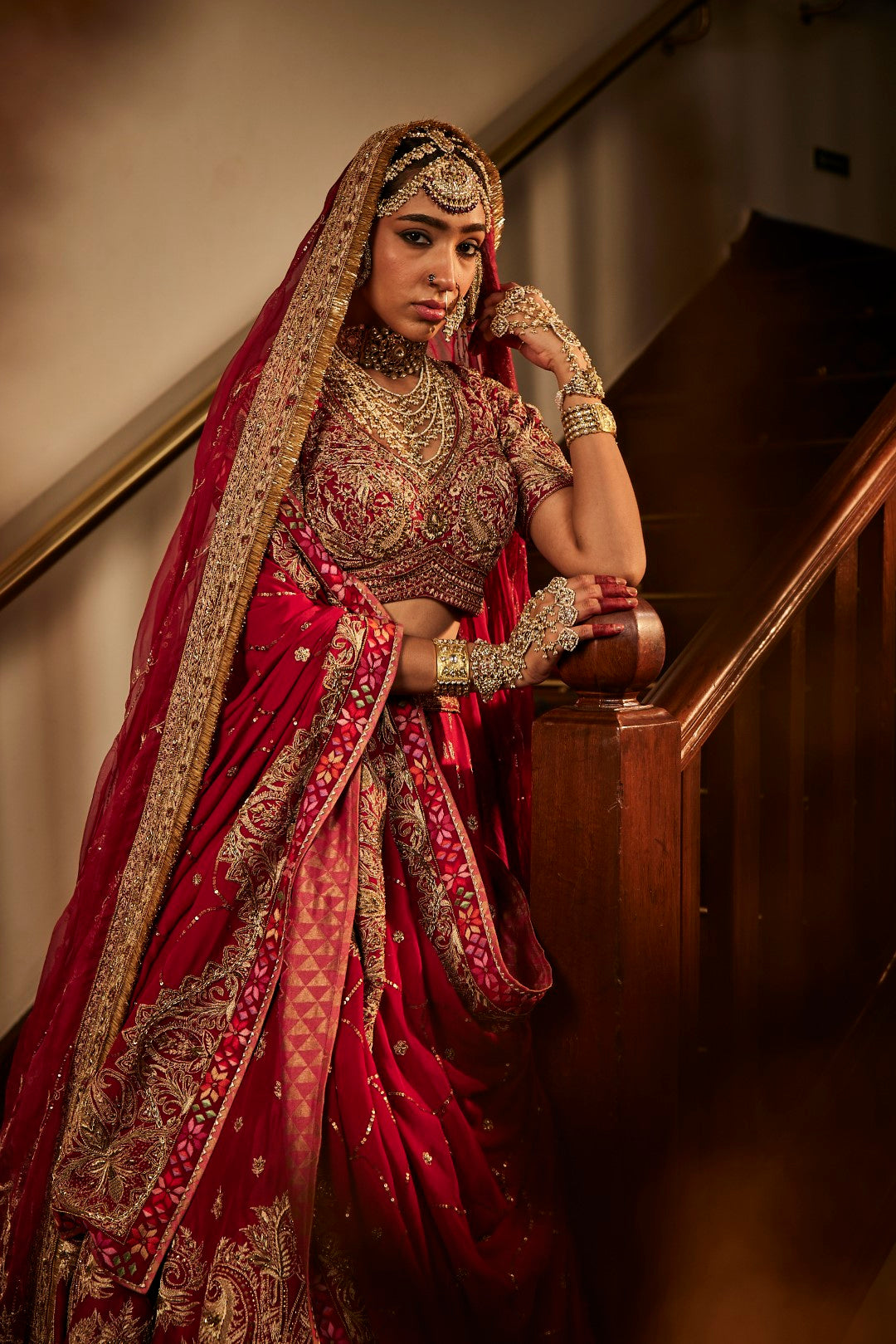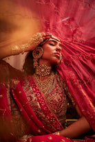 A generous 8m fakir with 2 organza dupatta, both making a statement in itself, and finished with pure brocade to add the final touch of royalty."