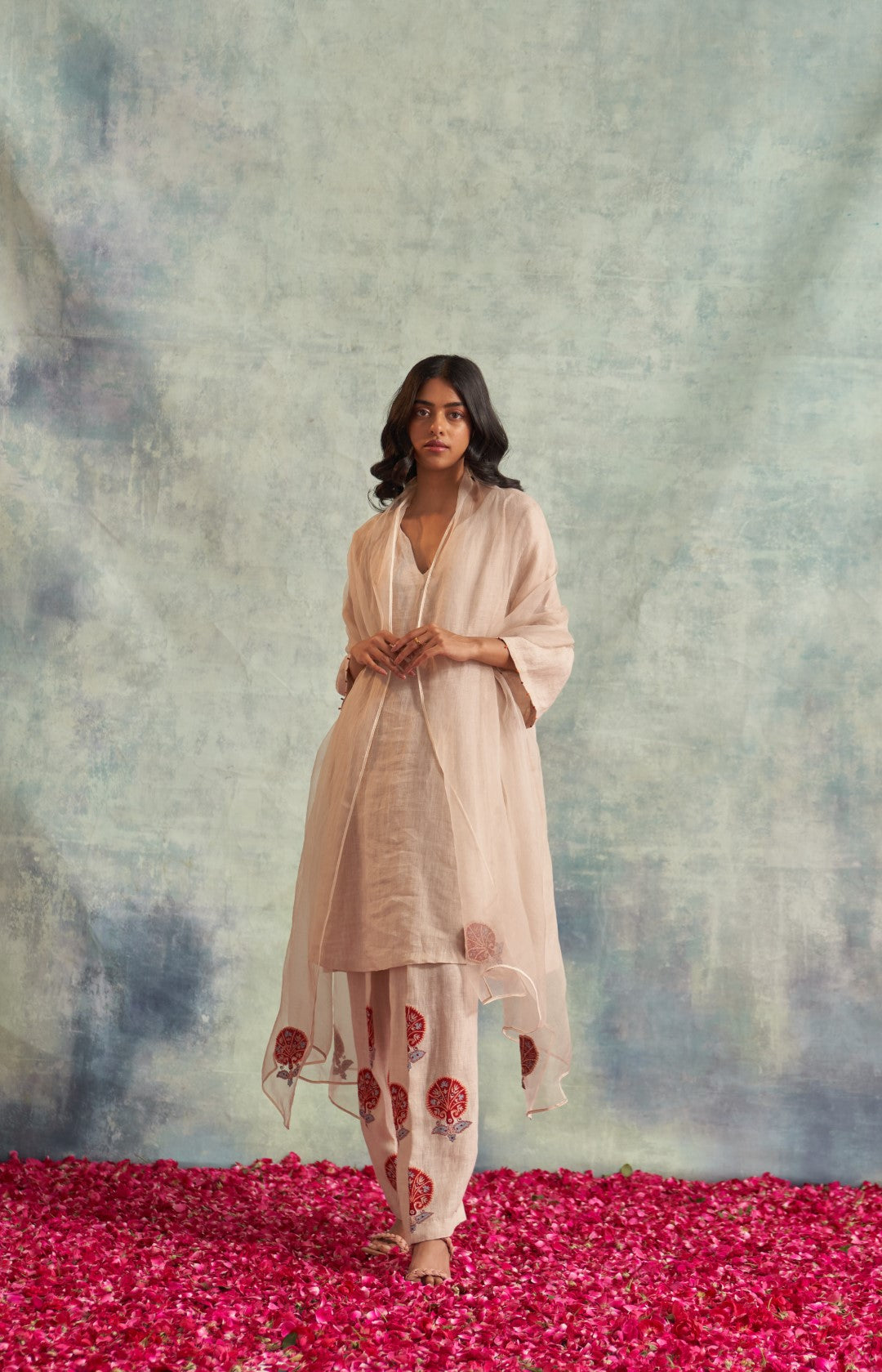 This outfit is crafted from pure fabric. To maintain its quality, colour, and finish, dry clean only is recommended