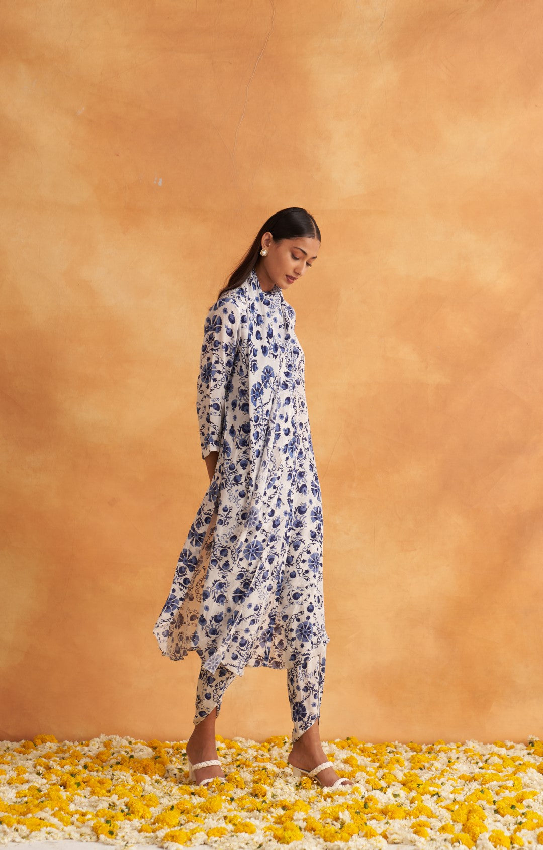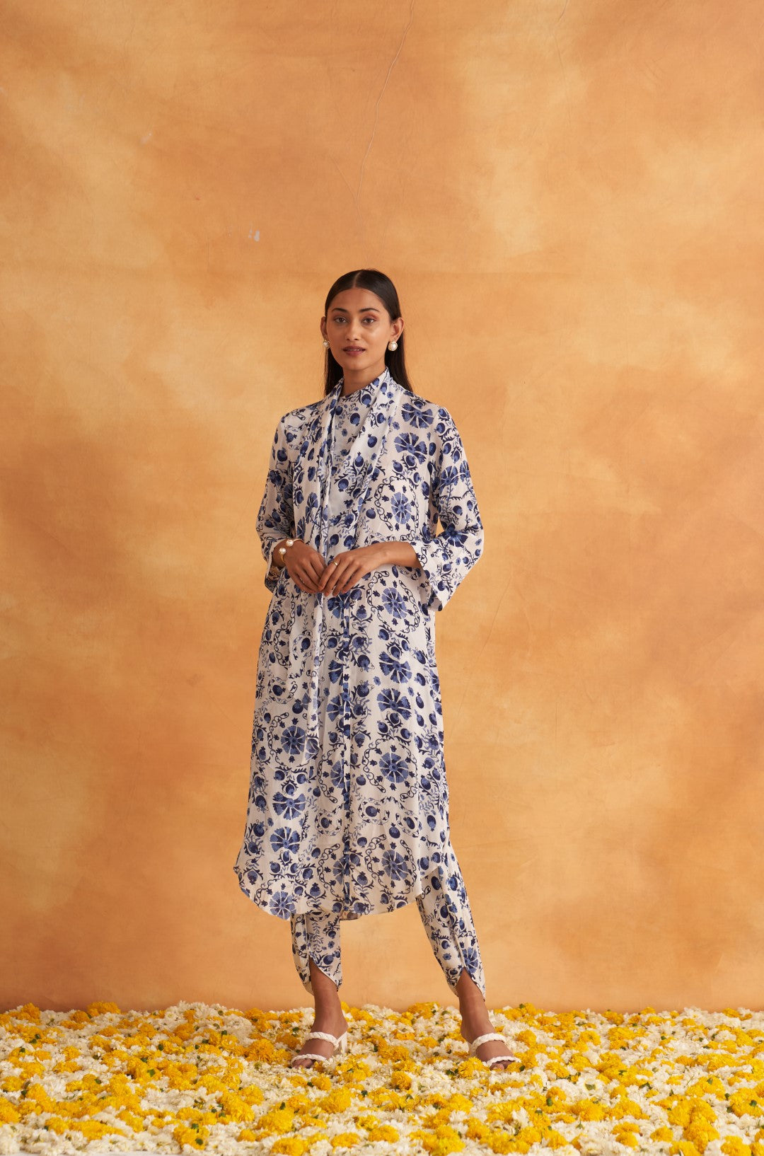 This outfit is crafted from pure fabric. To maintain its quality, colour, and finish, dry clean only is recommended
