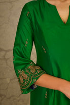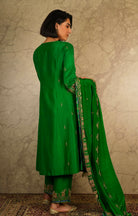 Show your ethnic style with this green a line suit. It is made using finest silk. Style it with a pair of statement earrings to complete the look.