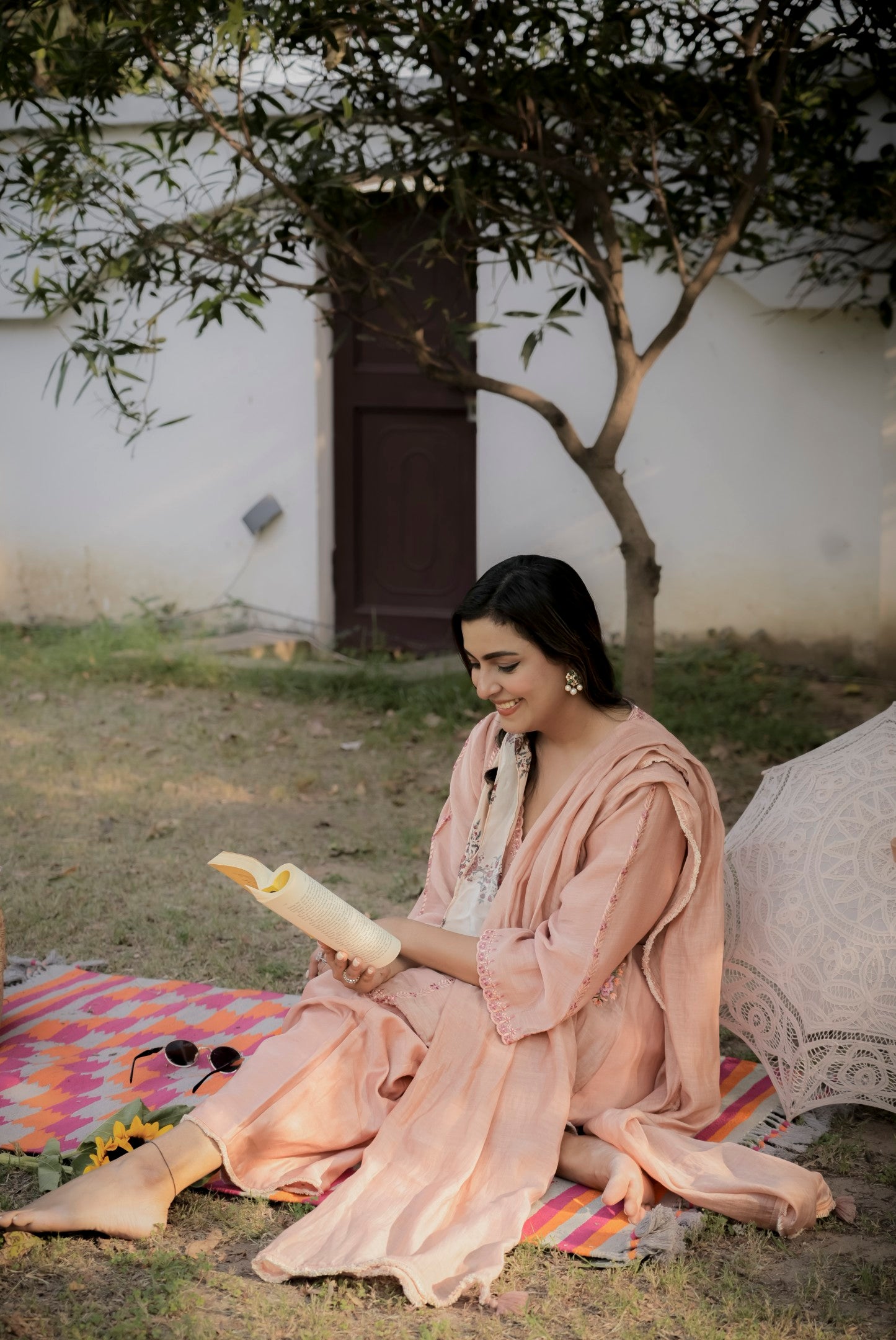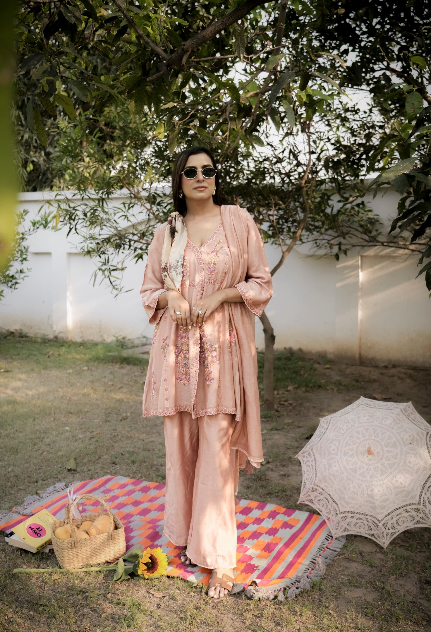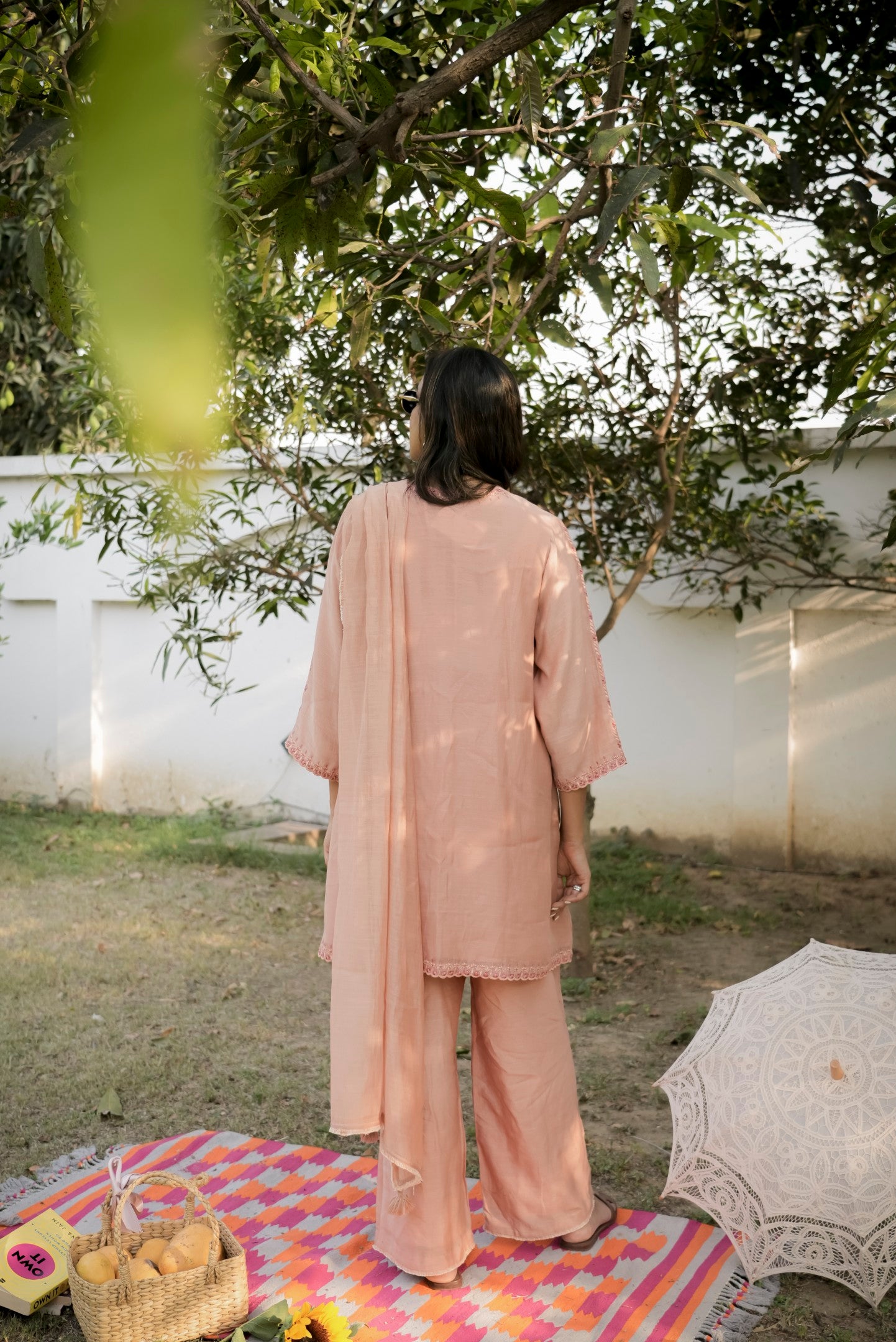 This outfit is crafted from pure fabric. To maintain its quality, colour, and finish, dry clean only is recommended